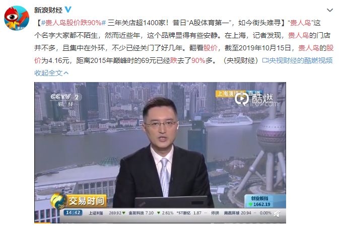 今年10月,央视财经还报道了贵人鸟“关店潮”惨状:最近三年来贵人鸟关闭门店超过1400家,2019上半年营收同比下降近50%,且由盈利转为亏损。