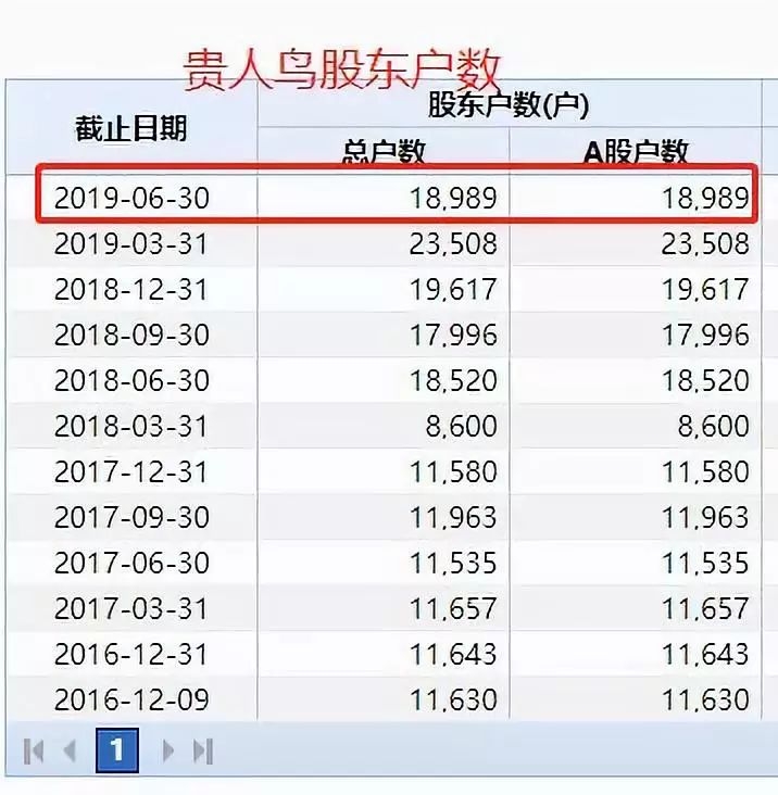 截至今年6月底,贵人鸟股票有1.9万户投资者。