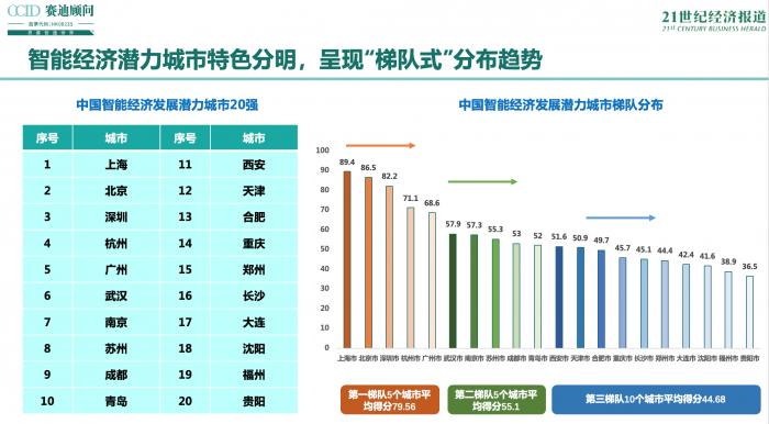 “智能经济潜力城市特色分明,呈现“梯队式”分布趋势,”董凯表示。