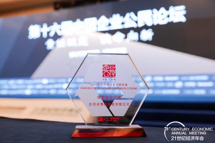 11月18日,21世纪经济报道·2019第十六届中国企业公民论坛在北京举行。同期举办的2019年度企业公民评选活动中,佳兆业集团凭借勇于践行社会责任的担当荣获“优秀企业公民”称号。