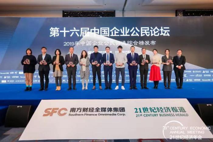 2019年11月18日,“第十六届中国企业公民论坛暨中国企业公民评选发布仪式”在北京举行,今年的主题为“责任赋能,使命向新”。