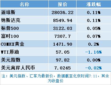 美股低开高走微幅收涨,三大股指再创盘中及收盘新高;趣店下调全年营收指引收盘重挫21%,万达体育财报转亏收盘跌近15%;黄金期货因国债收益率及美元走软提振,纽约黄金微涨0.2%报收1471.90美元;欧洲主要股市集体收跌。
