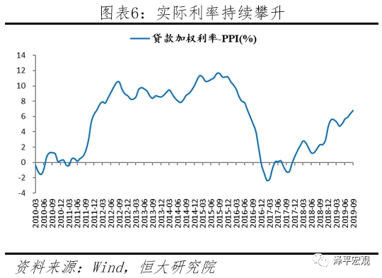 但是,2019年信用创造相对紧缩,民企和小微企业融资难融资贵问题突出,货币环境局部紧张。三季度企业贷款利率略有下行,但风险溢价高企推升企业融资实际成本,持续下行的PPI推升实体企业的实际利率。