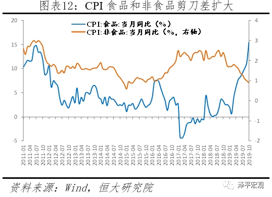 3)央行认为未来一段时间需要警惕通货膨胀预期发散。目前,核心CPI持续下行,国内经济总体平稳,猪肉价格尚未触发通胀预期,不存在持续通胀的基础。CPI关系到居民“菜篮子”消费成本,须引起重视并妥善应对。当前猪肉价格上涨通过消费替代效应带动牛肉、羊肉、蛋类价格上涨,鲜菜、鲜果价格在个别月份受极端天气影响出现阶段性上涨,因此需要防止通胀预期外溢,引发全面物价上涨。但是我国经济运行总体平稳,核心CPI持续下行,不存在持续通胀的基础。