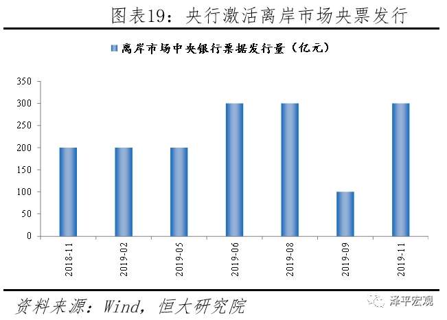 央行建立在香港的央票常态机制,加强预期管理,有效应对外部冲击,使人民币汇率在合理均衡水平上保持基本稳定。其一,建立在香港发行人民币中央银行票据的常态机制,带动其他发行主体在离岸市场发行人民币债券,促进离岸人民币市场持续健康发展。2018 年 11 月以来,央行在香港离岸市场滚动发行了13期共计1600 亿元人民币央行票据,建立了在香港发行央票的常态机制。其中,5月15日、6月26日成功发行4期共500亿元,8月14日、9月26日、11月7日发行5期共700亿元,有效应对了外部冲击下的离岸人民币市场波动。常态机制的建立,丰富了人民币流动性管理工具、香港市场高信用等级人民币投资产品,也有利于完善香港人民币债券收益率曲线,推动人民币国际化。其二,加强预期管理,当前央行积极与市场沟通,稳定居民及企业预期,避免预期持续积累导致汇率超调。2019年以来,以易纲行长为代表的重要官员均淡化整数关口的政策意义,与公众沟通进行预期管理。8月人民币破“7”后,央行迅速做出反应,解读并分析人民币汇率的贬值原因及未来走势,指出“人民银行有经验、有信心、有能力保持人民币汇率在合理均衡水平上基本稳定”。