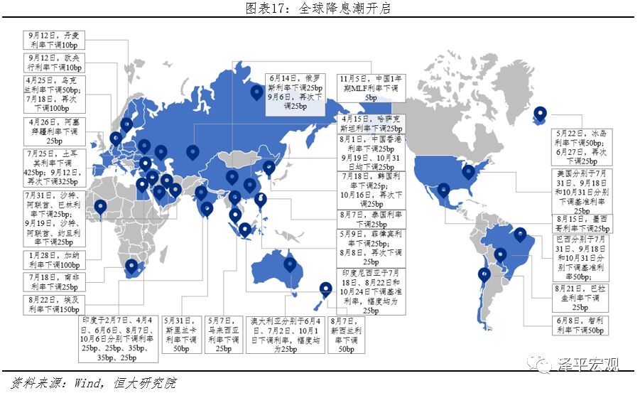 六、全球经济下行压力加大,全球启动降息潮,但主要经济体货币政策空间有限,外部不确定不稳定因素增多。