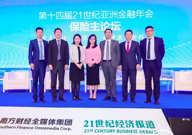 (上图从左往右: 21 世纪经济报道资深记者李致鸿、招商信诺人寿总经理兼首席执行官赖军、众惠财产相互保险社董事长李静,爱康集团首席策略顾问、乐荐集团董事长黄飞燕、同方全球人寿高级副总裁兼人力资源及行政官王前进、普华永道中国金融行业管理咨询合伙人周瑾、中意财险总经理袁颖晖)
