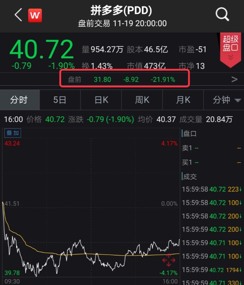 由于净亏损超出市场预期,拼多多盘前就暴跌超20%,市值一度缩减至不足380亿美元。