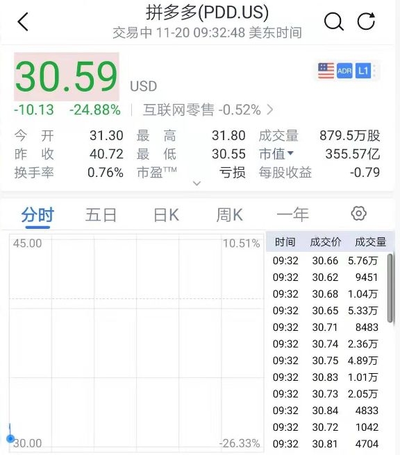 4个月来一路上涨、市值一度超过500亿美元的拼多多跌惨了!