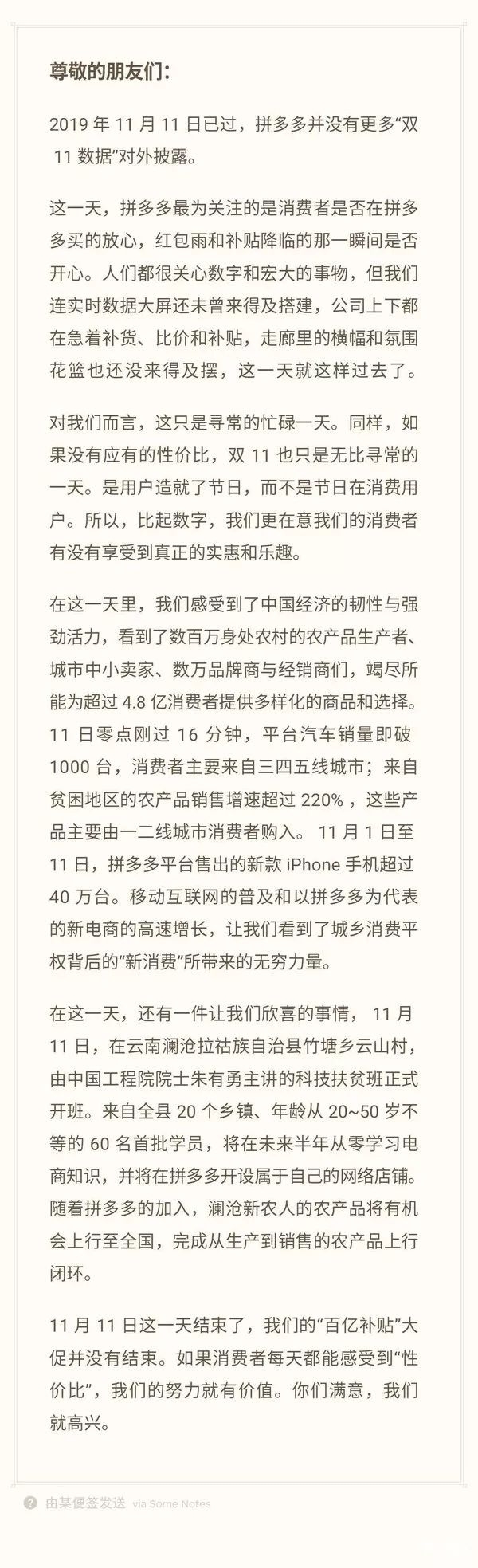 在投资者的殷殷期盼下,拼多多风轻云淡地发布了一封长信。