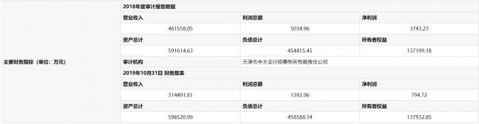 公告同时公布了天津交通集团的2018年财务审计报告和2019年10月31日财务报表。公告显示,截止到10月31日,天津交通集团资产总计约为59.65亿元,负债总计约为45.86亿元。2018年营收约为46.16亿元,其中利润总额约5035万元,净利润约3743万元。