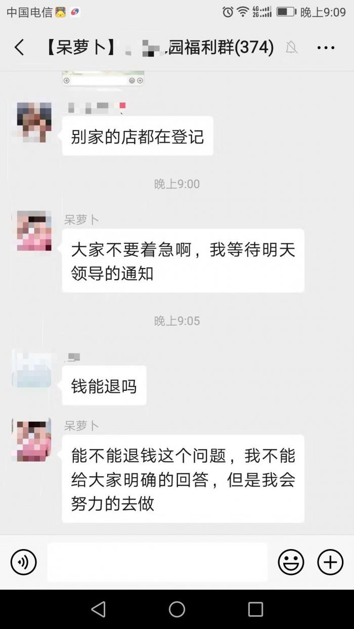 今天众多呆萝卜的用户发现很多门店的菜品已经无法下单,而对于充值是否能返现的说明并没有明确回复。仅一小区内“买菜群”内人数就多达374人,充值者众多且几百上千者不等,多的充值金额达数千元。