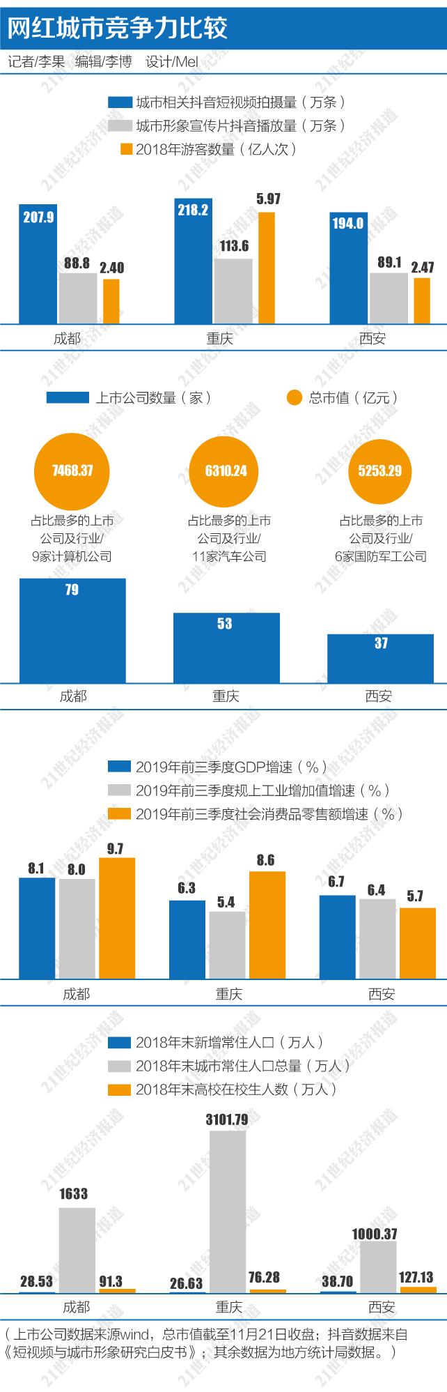 西南财经大学经济学院教授刘璐认为,网红城市跳出短视频平台,所比拼的本质其实是城市经济和社会发展的基本要素,如人口、产业规模、经济结构、基础设施水平等。