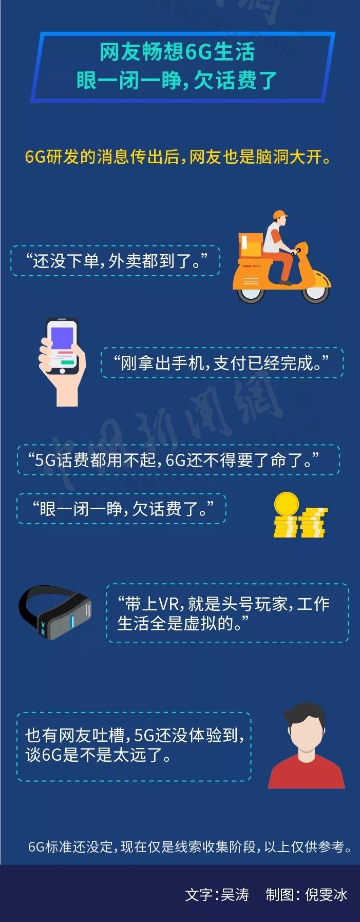“还没下单,外卖都到了。”“刚拿出手机,支付已经完成。”“5G话费都用不起,6G还不得要了命了。”“眼一闭一睁,欠话费了。”“带上VR,就是头号玩家,工作生活全是虚拟的。”