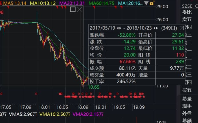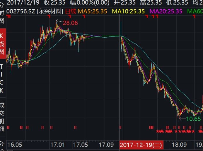 永兴材料在2017年11月29日《发行股份购买资产预案》之后,股价一路震荡下跌。从麦剑伟买入,到2018年10月23日,永兴材料跌幅达52.86%。