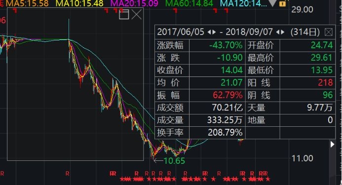 2017年6月5日至2018年9月7日,永兴特钢跌幅43.7%,股价最低探至13.95元/股。