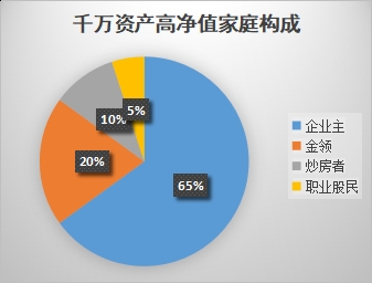 在职业股民高净值家庭下降的同时,企业主人群占到65%,增加5个百分点。企业资产占其所有资产的66%,他们拥有140万的可投资资产(现金及部分有价证券),20万以上的车和价值180万以上的住房。另外,金领人群占到20%,炒房者占10%。