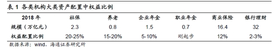 居民方面,2018年我国居民资产中房地产占比为70%,股票和基金配置比例仅为3%,受益于人口年龄结构变化、产业结构调整等因素,未来我国居民资产配置将从房产转向股权资产。