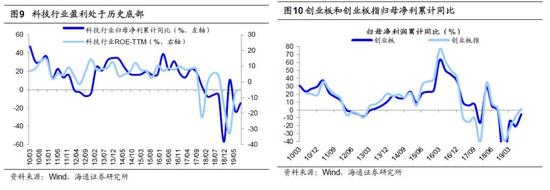我们前期报告《牛市第二阶段什么行业最强?-20190730》分析过,牛市主升浪行业间分化以盈利为基准,盈利上升陡峭行业涨幅居前形成主导产业。而每轮牛市主导产业都符合时代背景,“科技+券商”有望成为本轮主导产业。科技股业绩回升的动力是政策红利、技术进步,科技行业包括TMT和新能源车。