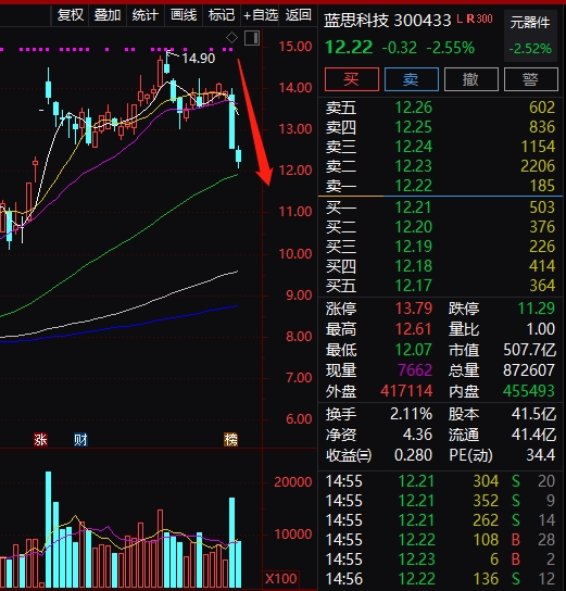 千亿芯片科技股高位掉头向下!