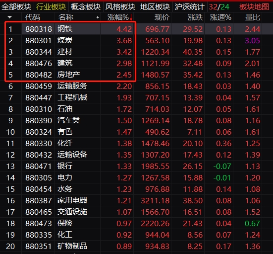 风格转换?钢铁煤炭股大涨