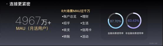 友情是不褪色的战袍,而近日,招商银行App就向世人展示了自己独一无二的“战袍”——用户突破1亿大关,正式跻身“亿级App俱乐部”,其中非招行用户达到了1300余万;月活用户(MAU)超过4967万,账户总览、收支、理财、招乎、生活、信用卡、转账、活动等8大场景MAU过千万,成为最受用户青睐的功能。