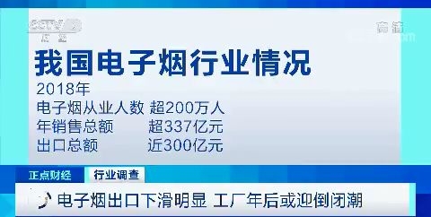 根据中国电子商会电子烟行业委员会提供的数据,中国是世界电子烟产品最大的生产国和出口国,2018年,国内电子烟从业人数超过200万人,年销售总额超337亿元,出口总额接近300亿元。