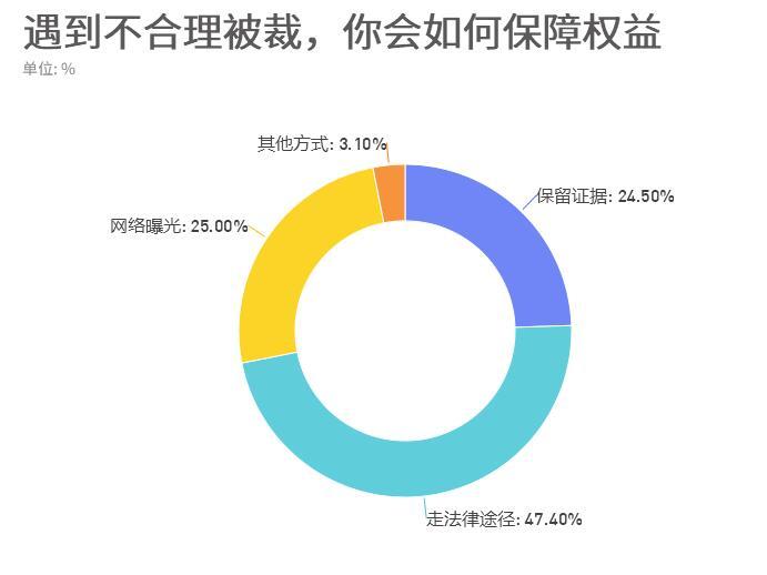 那么当真的遇到“被裁员”时,又多少人会选择法律途径解决呢?就这一问题21君也有发起微博投票,结果显示:参与投票的读者中,近半数人会选择法律途径,25%的人则会选择网络曝光。