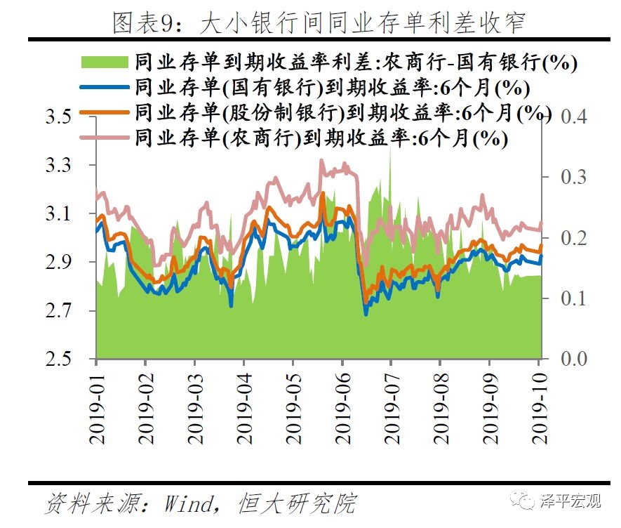 第二,大小银行间利差收窄,但仍然存在分层。