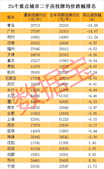 25个重点城市有20个下跌,最高跌幅17%
