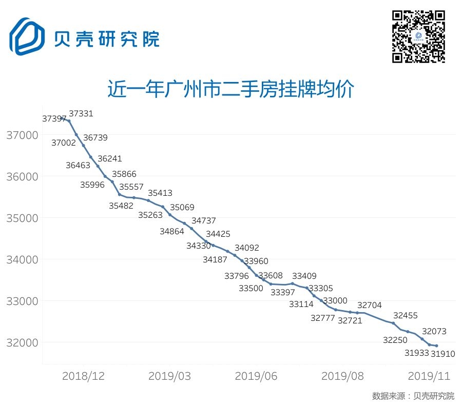 广州成为四大一线城市跌幅最大的城市,上海和北京也出现下跌。其中,北京二手房挂牌均价从一年前的64166元跌至61302元,跌幅超4%;上海从52991元跌至51228元,跌幅超过3%。