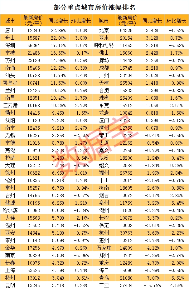 中国房地产业协会数据显示,深圳二手房均价目前已经上涨至65364元,较一年前涨幅高达17.18%。宁波过去一年房价涨幅达到16.35%,涨至21486元。苏州涨幅14.96%,达到23189元。沈阳上涨9.22%,涨幅9.22%。成都上涨2.21%,为15745元。