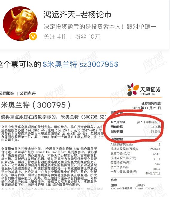 日前,在微博和部分微信炒股群内,两张涉及左江科技(300799)和米奥兰特(300795)的研报截图广泛流传。 两份研报显示发布时间为11月21日和25日的研报,格式排版均与天风证券研报高度相似,抓眼球的是,上述研报给出的目标价均是股票当前价格的近3倍。此外,在两份报告中“被”署名的潘暕,为天风证券电子行业首席分析师。