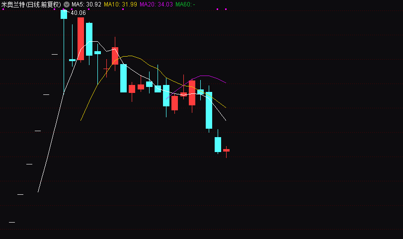 11月21日即伪造研报出炉的交易日,米奥兰特当日低开高走上涨3.01%,收报34.25元。但从21日至今,米奥兰特股价掉头向下,累计下跌13.96%。