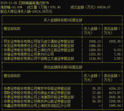 11月25日,即伪造研报出炉的交易日,左江科技开板即跌停,收于137.66元/股;而前一交易日11月22日,该股还创出新高156.5元。自11月25日至今,左江科技已累计下跌21.34%。11月25日、26日和27日的龙虎榜显示,三日来均为游资出货,其中11月25日净卖出4761万元,11月26日净卖出约1亿元,11月27日净卖出5484万元。