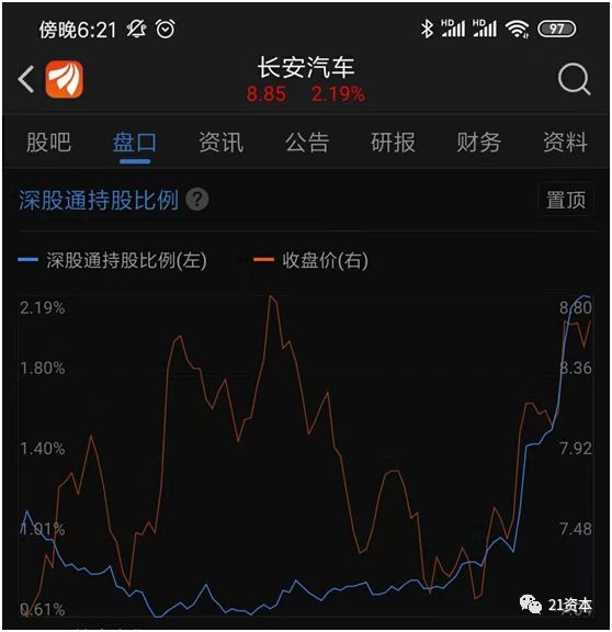 最先跑出的是长安汽车:11月以来,该股涨幅达到23.06%,同期大盘涨幅仅0.43%。而且深股通的持股比例出现大幅增长,从11月1日的3677万股增加到11月25日的8522万,净增加近5千万股。