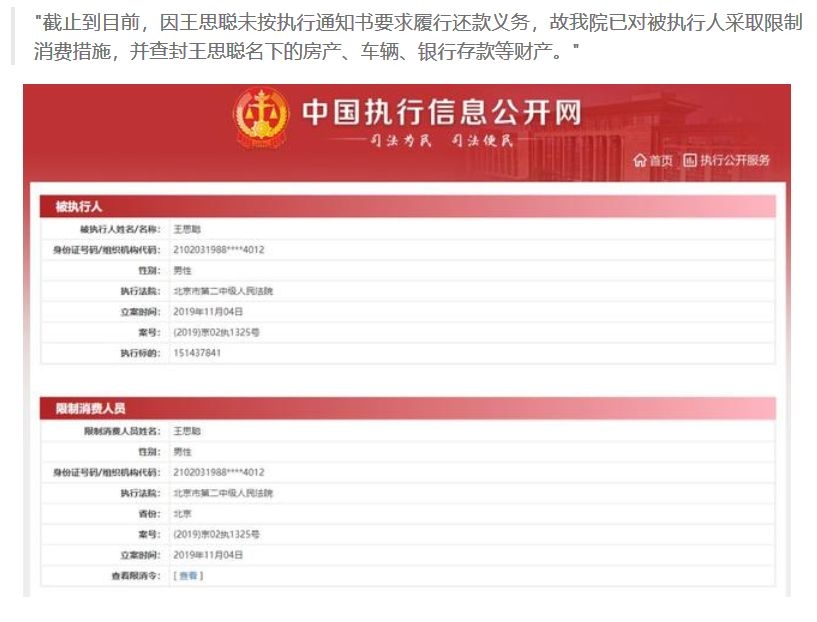 王思聪近来风波不断:先是被法院列为被执行人,又被限制高消费。