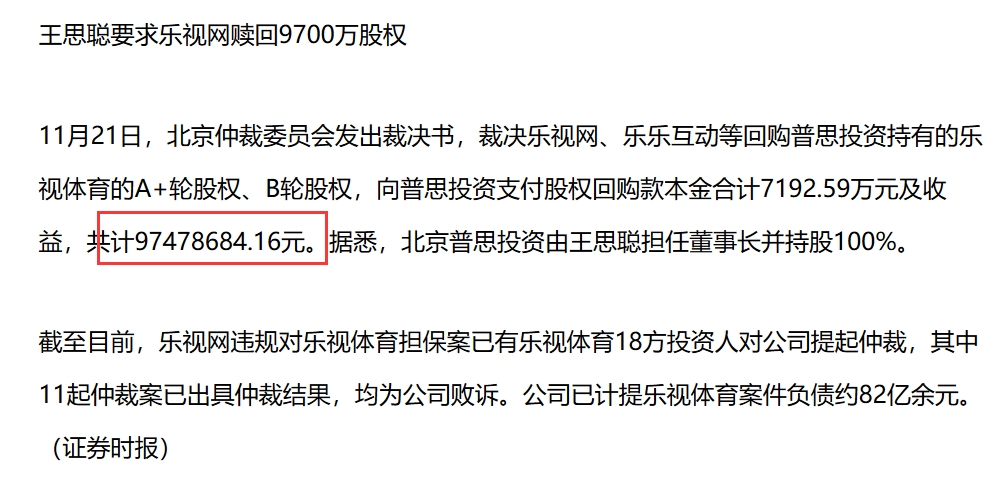 王思聪想找贾跃亭要钱,赎回9700万股权,可惜乐视体育已成僵尸公司。