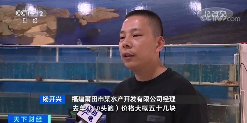 福建莆田市海发水产开发有限公司经理 杨开兴:到南日岛采购的10头鲍,44到45元左右。去年价格比今年好,去年10头鲍价格大概50几元,今年价格整体下降了十几元。