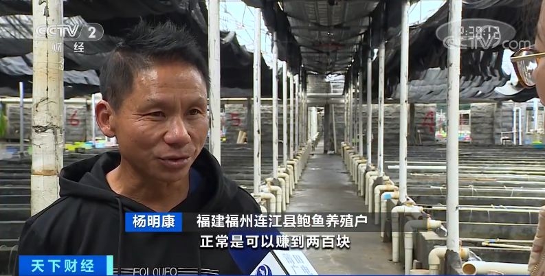 福建福州连江县鲍鱼养殖户 杨明康:去年我们养一笼鲍鱼,正常能赚200元。今年的很低,(一斤12头的)最低价40元都卖了。