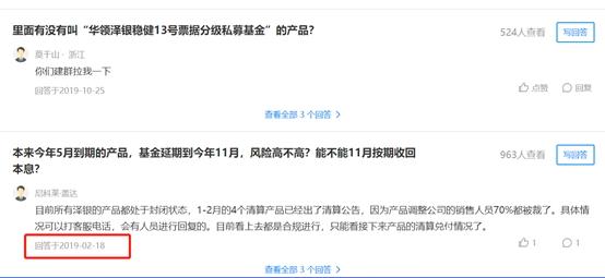 上海洗霸称,11月7日,该基金存续期已经届满,正式进入30个工作日的清算期。但华领资管相关负责人给公司确认过有两只2019 年下半年到期的产品“华领泽银稳健18号票据分级私募基金”“华领泽银稳健19号票据分级私募基金”已出现清算期满未能如期、足额兑付包括但不限于优先级份额的投资本金及收益的情形。