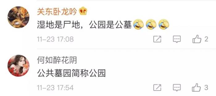 对此,有网友认为楼盘涉嫌虚假宣传:湿地变“尸地”,公园变公墓。