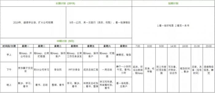 如图先做三份表格,分别是长期、中期、短期计划表。