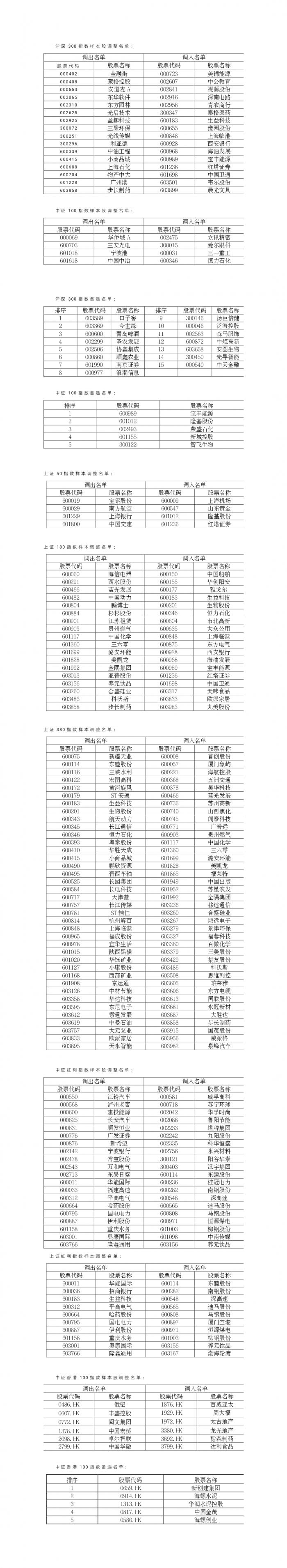 上证 50 指数更换 4只股票,上证 180 指数更换 18 只股票,上证 380 指数更换 38 只股票,上证红利指数更换10只股票。