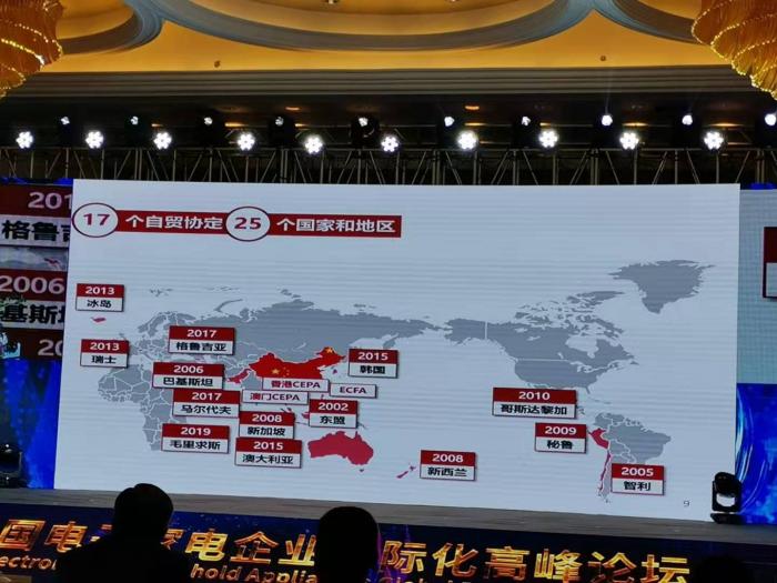 他介绍,从2002年到现在,经过17年的努力,截至目前,中国陆续签署了17个自贸协定,涉及25个国家和地区,遍及世界各地,这些自贸区包括亚洲的东盟10国,以及韩国、巴基斯坦、马尔代夫13个国家,还有美洲的智利、秘鲁、哥斯达黎加3个国家,大洋洲的澳大利亚和新西兰,欧洲的冰岛和瑞士,欧亚地区的格鲁吉亚,还有非洲的毛里求斯。