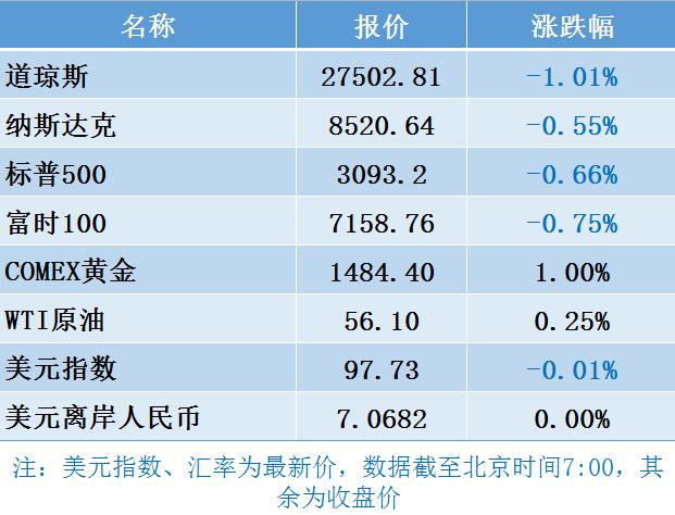 2、美国三大股指连跌三天,道指收跌1%,重挫280点,标普500收跌0.66%,纳指收跌0.55%。。科技股普跌,苹果领跌FAANG五大科技股,跌幅达1.7%;英特尔、美光科技、应用材料、高通等芯片股均跌超2%。热门中概股多数下跌,如涵跌超11%,虎牙、趣头条跌超6%;瑞幸咖啡逆势涨超5%。伴随着美债收益率大跌,美股银行股集体走弱,高盛、摩根士丹利跌超2%,富国银行跌1.9%,德意志银行跌1.8%,美国银行、花旗、摩根大通均跌超1%。
