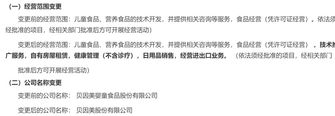 10月初,贝恩美公告,将公司名称由“贝因美婴童食品股份有限公司”改为“贝因美股份有限公司”,甚至还增加了房屋租赁等主营业务,这一举动引来投资者的广泛关注,就连深交所也下发了问询函。