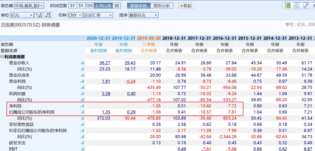 连续两年贝因美扣非净利润的亏损额分别达到7.99亿元和11.4亿元,公司也被ST处理;