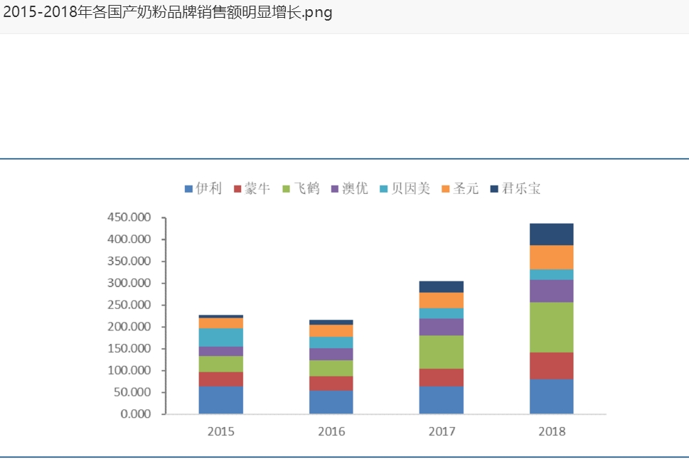 如图可得知,近三年来销售额增长最快是飞鹤,伊利,生源,君乐宝。贝因美和澳优则是在掉队。