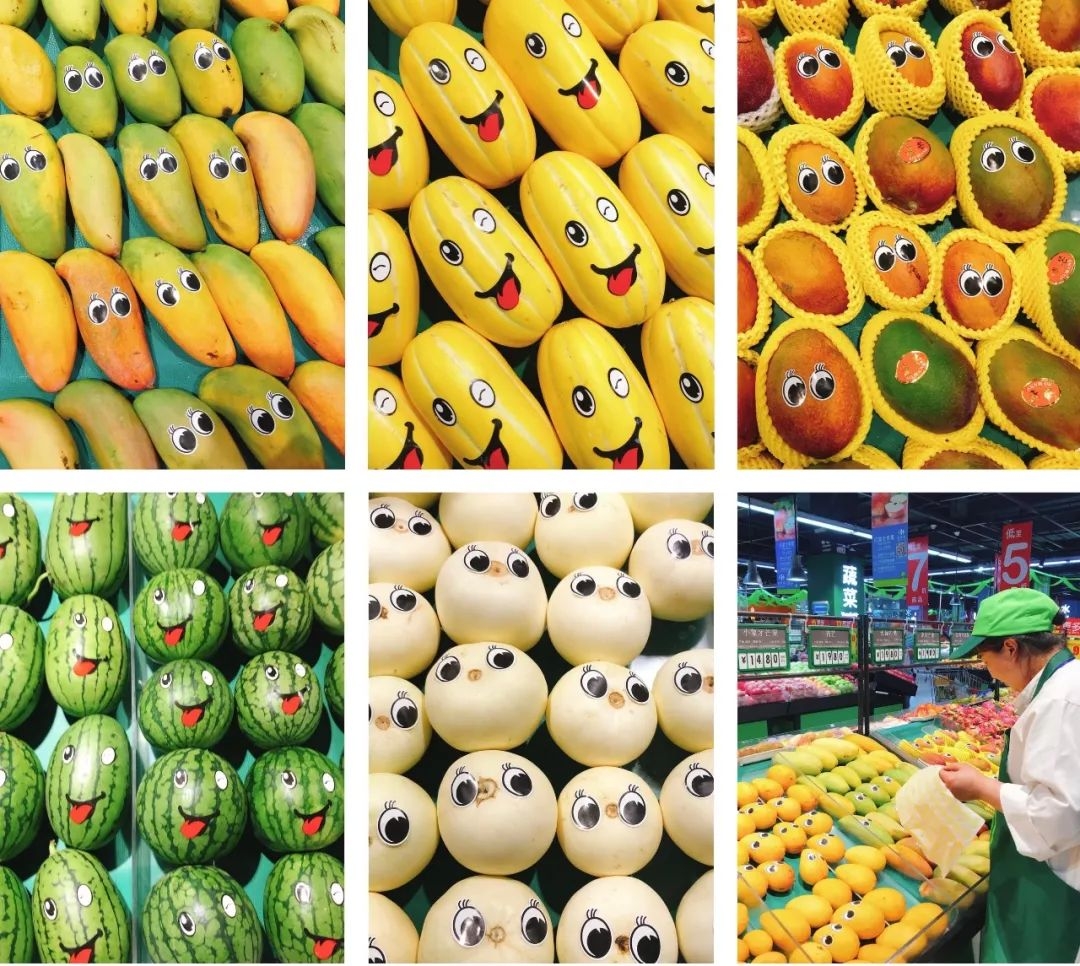 午休去超市,一位店员居然在给水果贴眼睛!太萌了,好像能听见水果叽叽嘎嘎的笑声。说好的不能成精呢?